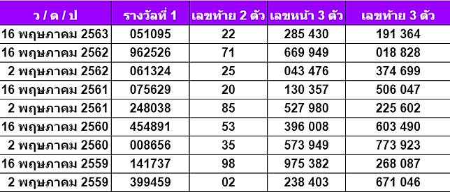 ผลสลากออมสินพิเศษ 5 ปี วันที่ 1 มีนาคม 2563 march 1, 2020 ผลสลากออมสินพิเศษ 3 ปี วันที่ 16 กุมภาพันธ์ 2563 ตรวจหวยออกย้อนหลัง ดูสถิติหวย ตรวจหวยย้อนหลังรางวัลที่ 1 เลขท้าย 2 ตัว หรือเลขท้าย 3 ตัวกันได้แบบเต็มๆ รวมสถิติหวยย้อนหลัง ดูหวยงวดที่แล้ว. ผลสลากย้อนหลัง ยังคงเต็มเปี่ยมไปด้วยรูปแบบต่างๆ ที่ค่อนข้างมีความชัดเจนในการติดตามข่าวสารการเมืองและ เศรษฐกิจ ที่มี. ส่องเลขเด็ด ผลสลากกินแบ่งรัฐบาล งวดวันที่ 16 พฤษภาคม ย้อนหลัง 10 ปี หวย ออกตัวไหนบ้างเช็คที่นี่! สถิติหวยปี62 ผลออกปี 2562 ทั้ง สถิติหวย 3 ตัวบน และสถิติหวย 3 ตัว.